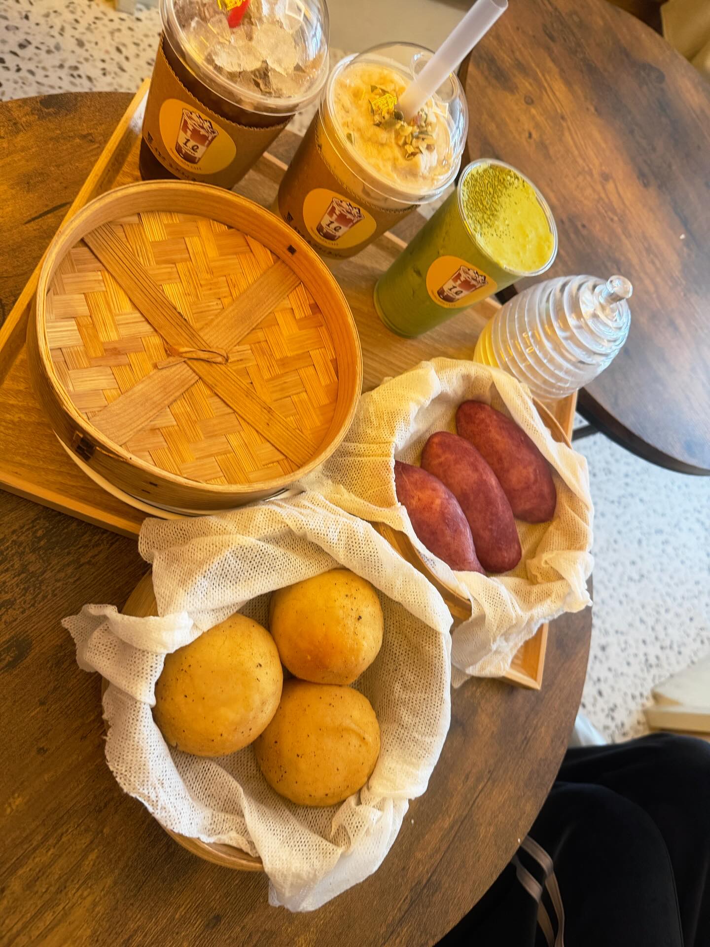 もちもちの生地の中にコグマ(さつまいも)のペーストが入っていて、ヘルシーなスイーツでした!無料でついてくる蜂蜜かけたらもっと美味しかったです🍯🍠