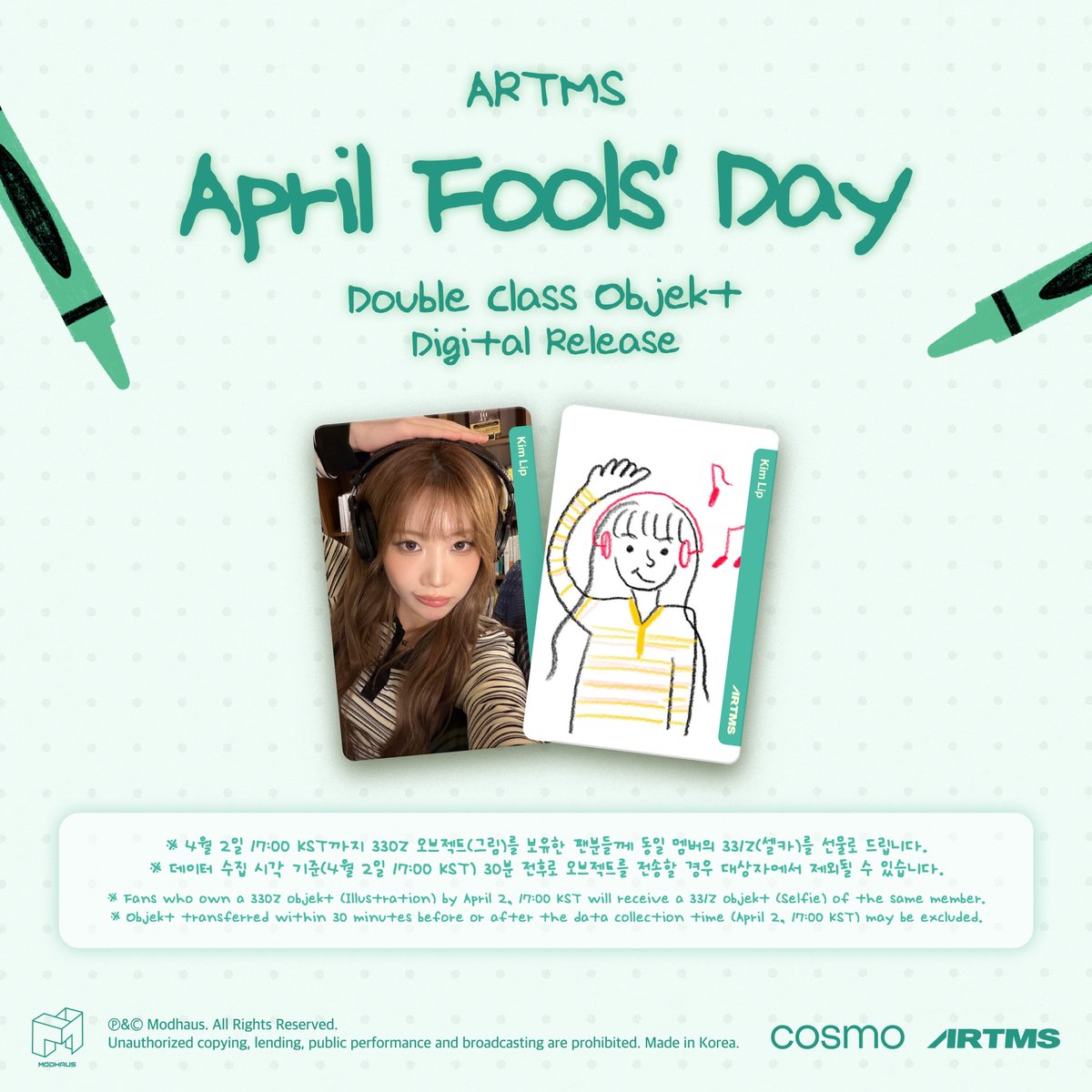 ※ Fans who own a 330Z Objekt (Illustration) by April 2, 17:00 KST will receive a 331Z Objekt (Selfie) of the same member.
