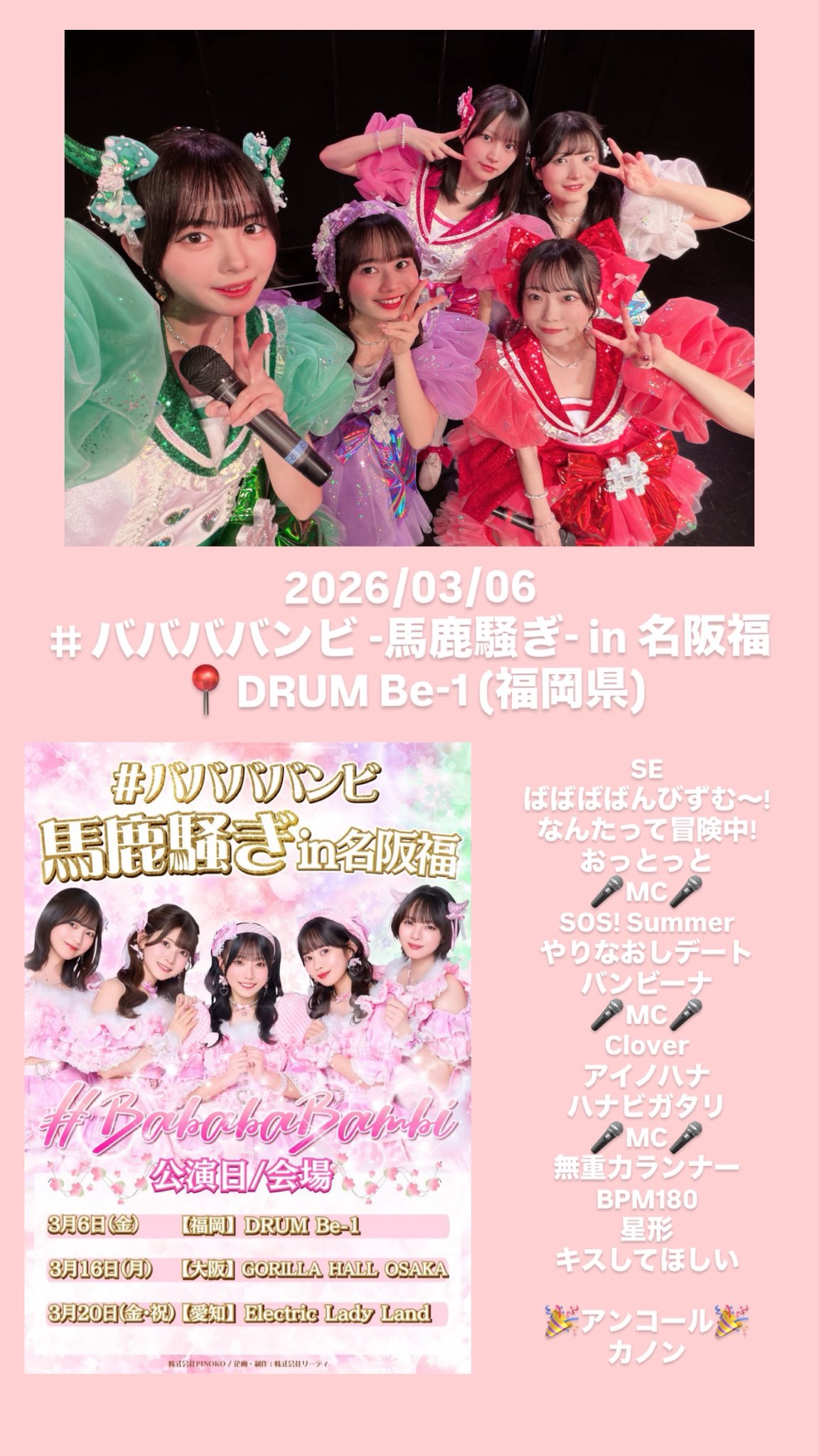 #ババババンビ 次のライブ予定は