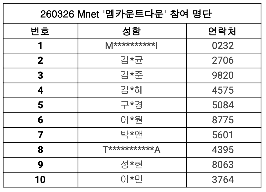 - 녹화 당일 방송사 사정에 따라 인원 체크 시간, 참여 인원이 변동이 있을 수 있습니다.(cosmosy 공식 X(@cosmosy_x) 상시 확인 필수)