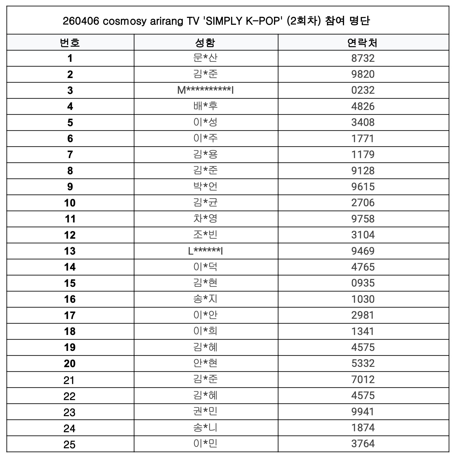 2026년 4월 6일 (월) cosmosy arirang TV ‘SIMPLY K-POP’ ⭐️ 사전녹화 2회차 ⭐️ 참여 명단 안내입니다.