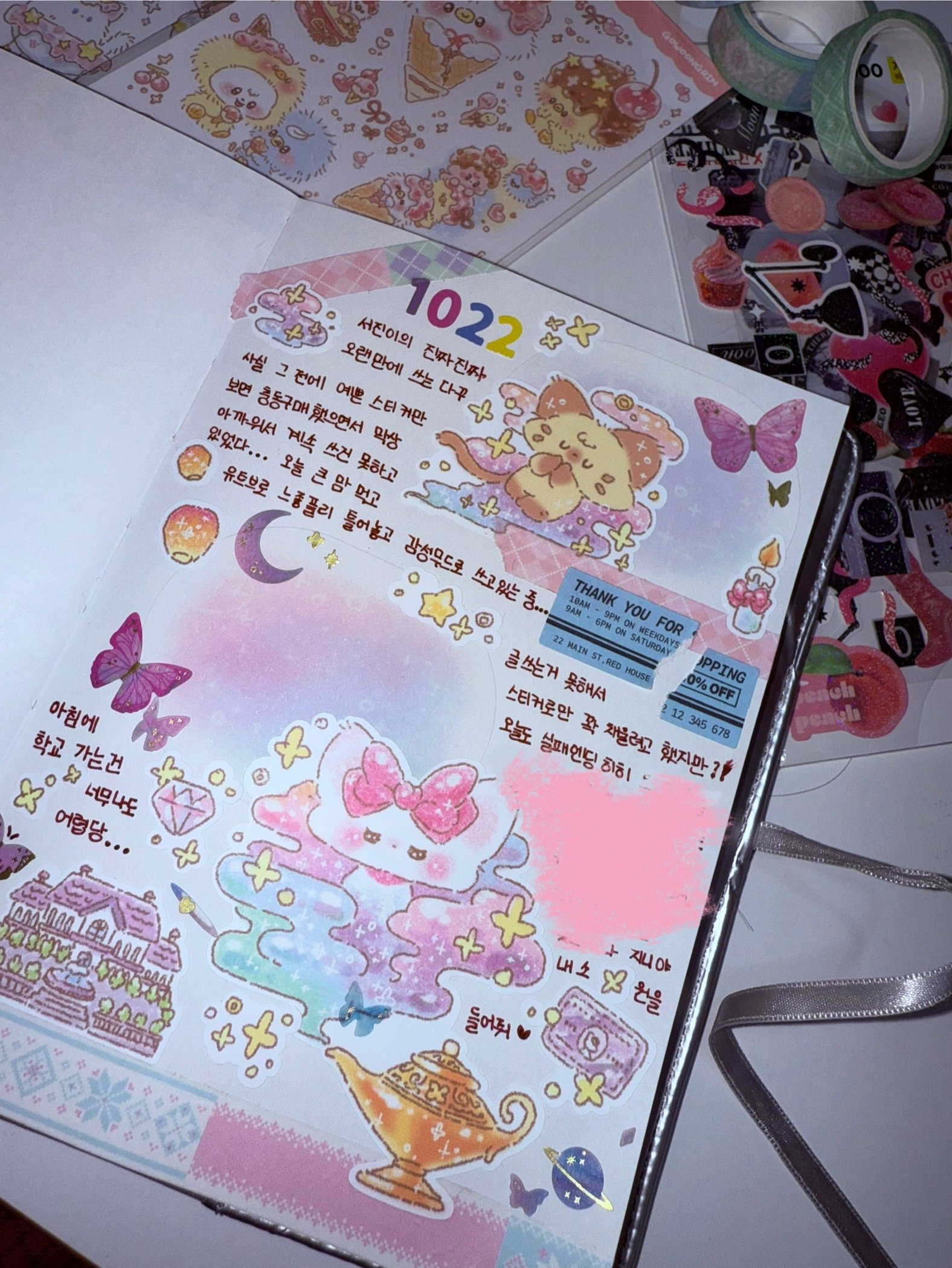 안녕하세요 서진입니댜🦋오늘 뷰티바에서 저희를 불러주셔서 키치한 옷을 입고 갔는데 사실 오늘의 헤메코가 너무 맘에 들어서 빨리 팬분들께 보여드리고 싶었어요😚 그리고 저희의 첫방송을 아이돌라디오에서 하게 되었는데 사실 이렇게까지 많은 분들이 와주실줄 몰랐어요🥹❤️ 정말 감사드립니다!! 오늘을 위해 메들리 댄스곡들을 열심히 연습했는데 팬분들 앞이라서 더 신나