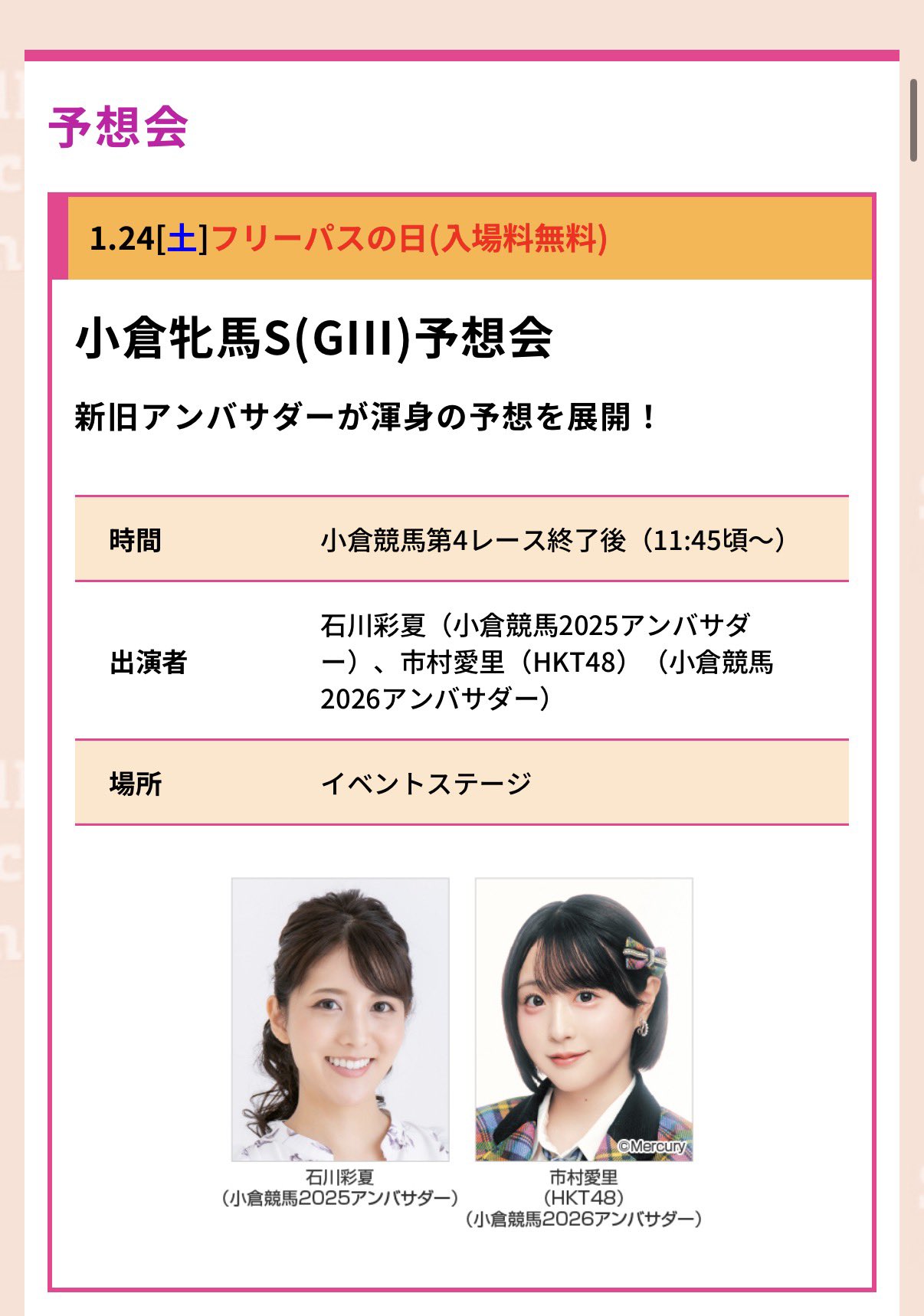 この度、2026年小倉競馬アンバサダーに