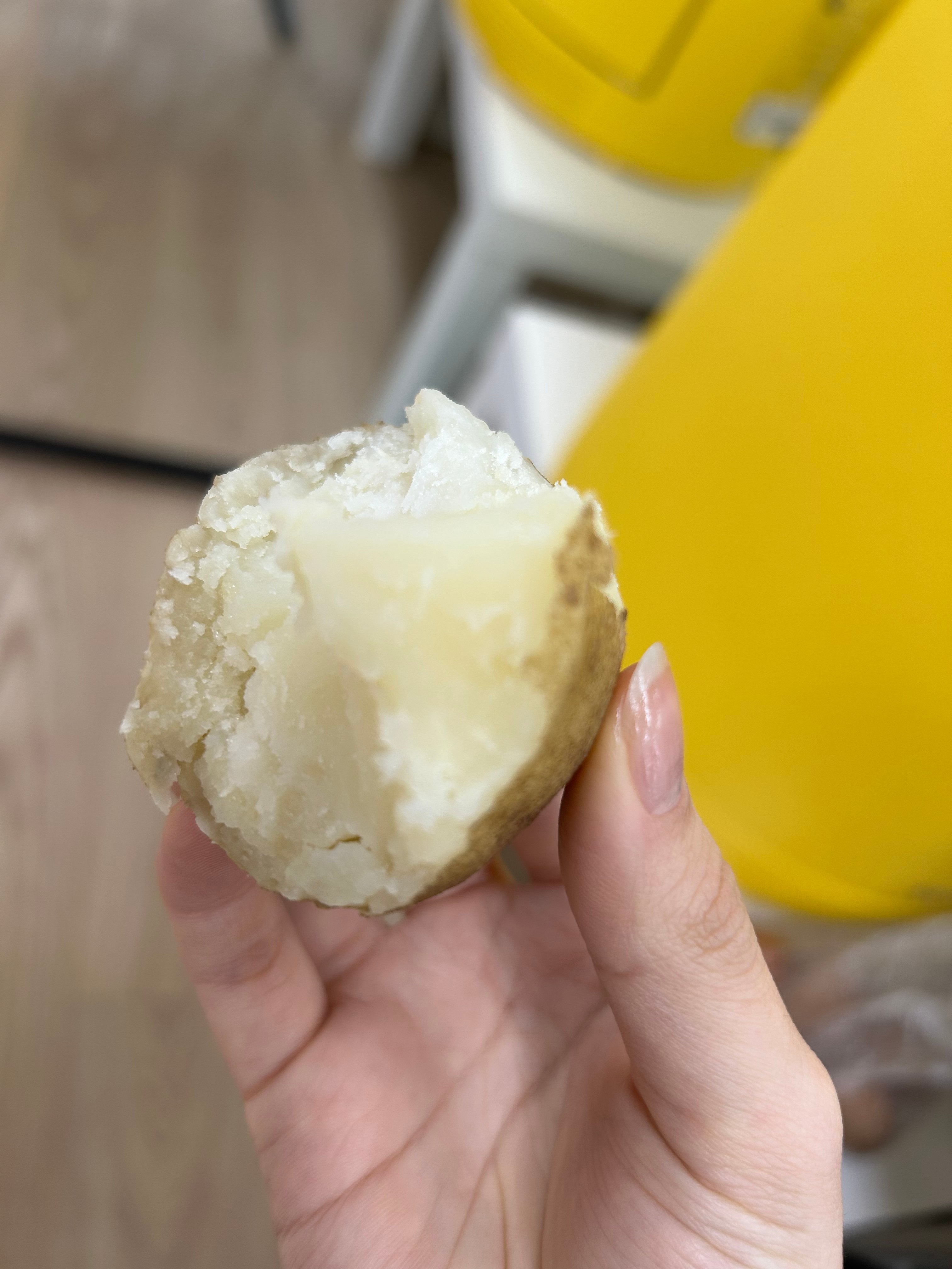 감자를 찌려고 물로 깨끗이 씻었는데 한 감자의 한 부분이 썩은 것처럼 까매져있었다. 버릴까 하다가 그냥 씻어서 찜기에 같이 넣었는데 오늘 그 감자를 꺼내서 먹어보니까 검은 부분만 껍질을 떼고 먹었더니 멀쩡한 감자였다. 안 버리길 잘했다🥔요즘 너무너무 추우니까 면역력 떨어지지 않게 건강한 음식들 잘 챙겨 먹어야 돼 큥이들!! 냉동 블루베리는 너무 차가우니