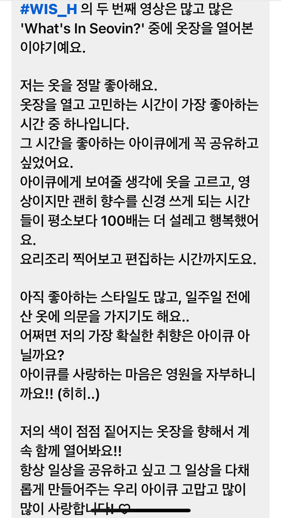 아이큐!!!!내가 좋아하는 말 중에‘사람들은 모두 같은 하늘을 보며 살아가니까 누군가가 보고 싶어질 때는 하늘을 바라보게 되고, 그 하늘을 보면서 힘을 얻는다' 라는 말이 있는데!!!!🫣요즘 유독 더 아이큐들이 너무너무 보고 싶어서 자꾸 하늘을 쳐다보게 돼🥹🤍오늘 퇴근길에도 하늘 보면서 갈 테니까 내 꿈에 나와줘 히히🛌🤍